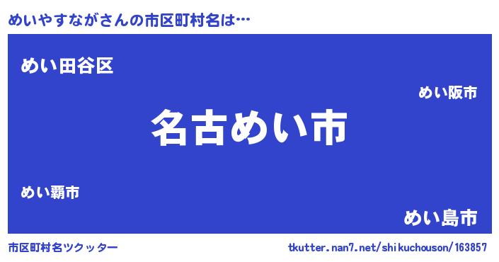 | 肩書あだ名 | 『めいやすながプロデューサー』 |