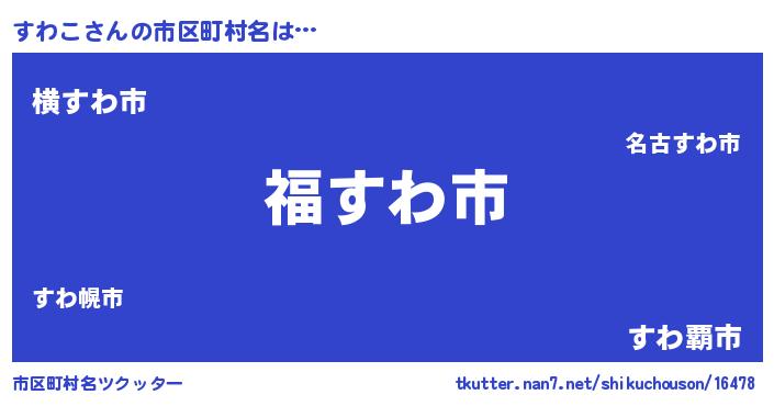 | 男性向けラノベタイトル風あだ名 | 『すわこ~年齢イコール彼女いない歴の魔法使い~』 |