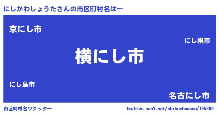 | 意味不明あだ名 | 『自称にしかわしょうた』 |
