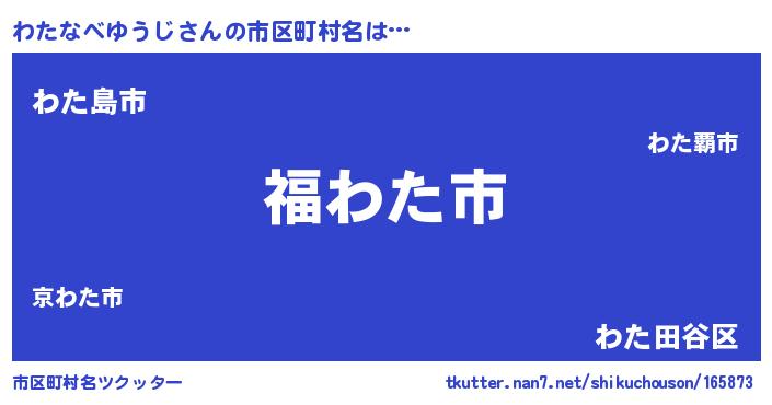 | 男性向けラノベタイトル風あだ名 | 『わたなべゆうじ~年齢イコール彼女いない歴の魔法使い~』 |