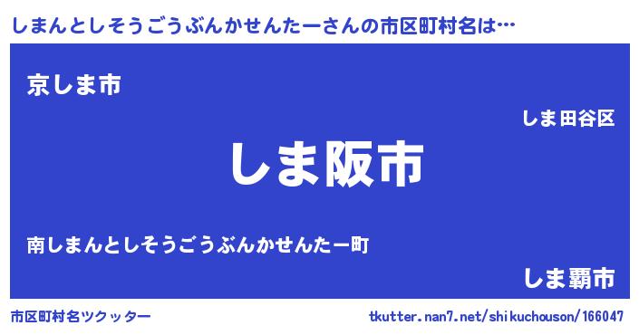 | 意味不明あだ名 | 『とにかく怪しいしまんとしそうごうぶんかせんたー』 |