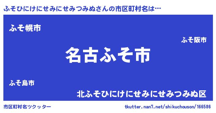 | 男性向けラノベタイトル風あだ名 | 『ふそひにけにせみにせみつみぬに滅ぼされるだけの簡単なお仕事です』 |