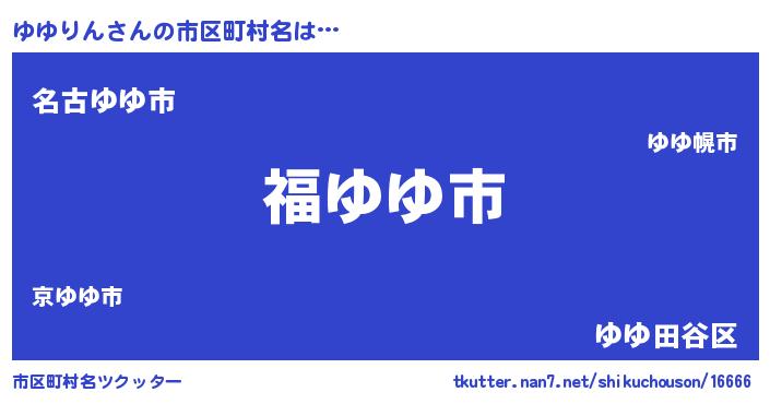 | 男性向けラノベタイトル風あだ名 | 『ゆゆりん~年齢イコール彼女いない歴の魔法使い~』 |