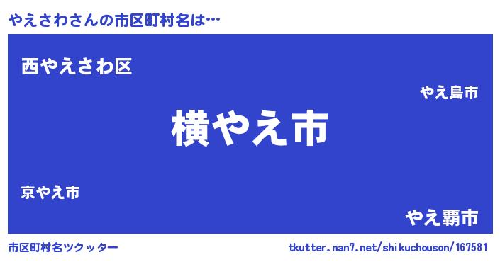 | 男性向けラノベタイトル風あだ名 | 『Re:やえさわから始める異世界生活』 |