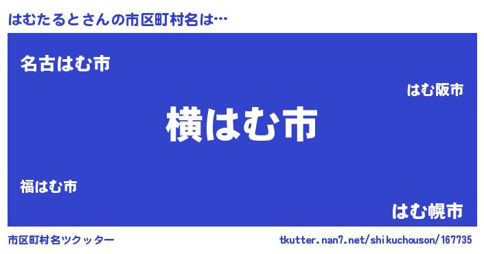 | 男性向けラノベタイトル風あだ名 | 『Re:はむたるとから始める異世界生活』 |