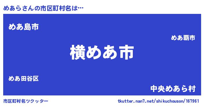 | 肩書あだ名 | 『めあら総統』『めあら学部長』 |