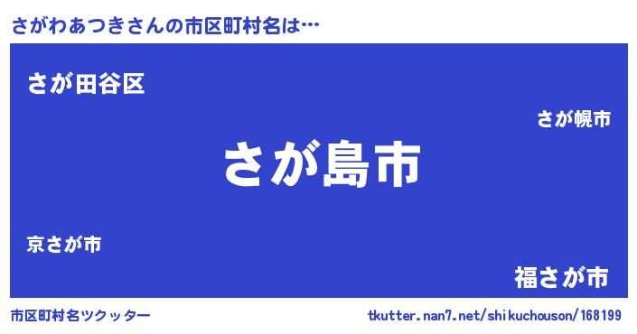 | 男性向けラノベタイトル風あだ名 | 『おまえをオタクにしてやるから、俺をさがわあつきにしてくれ! 』 |