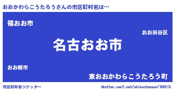 | 男性向けラノベタイトル風あだ名 | 『おおかわらこうたろうに滅ぼされるだけの簡単なお仕事です』 |