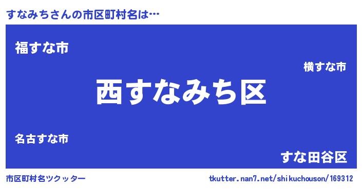 | 男性向けラノベタイトル風あだ名 | 『すなみちの憂鬱』 |