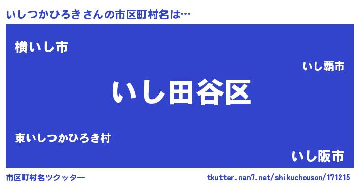 | 男性向けラノベタイトル風あだ名 | 『うちのいしつかひろきが世界を掌握している!』 |