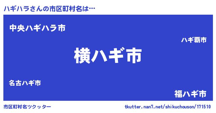 | 男性向けラノベタイトル風あだ名 | 『Re:ハギハラから始める異世界生活』 |