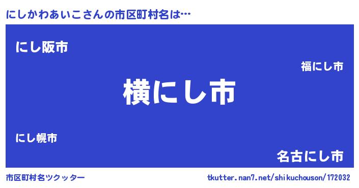 | ポケモン風あだ名 | 『ニシセウス』『ヒニシカワアイコ』 |