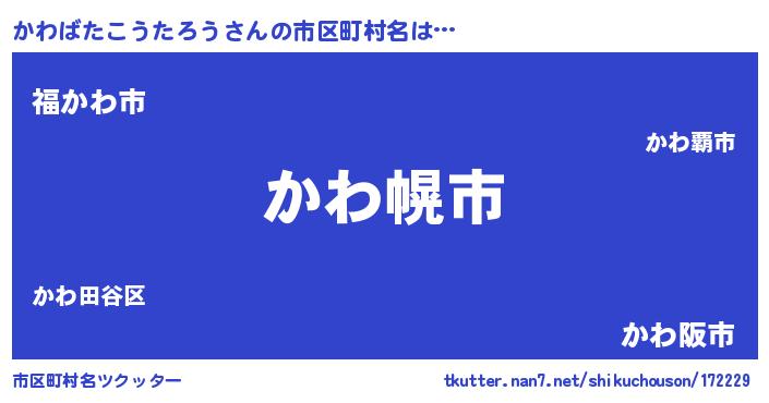 | 男性向けラノベタイトル風あだ名 | 『やはりかわばたこうたろうの青春ラブコメはまちがっている 』 |