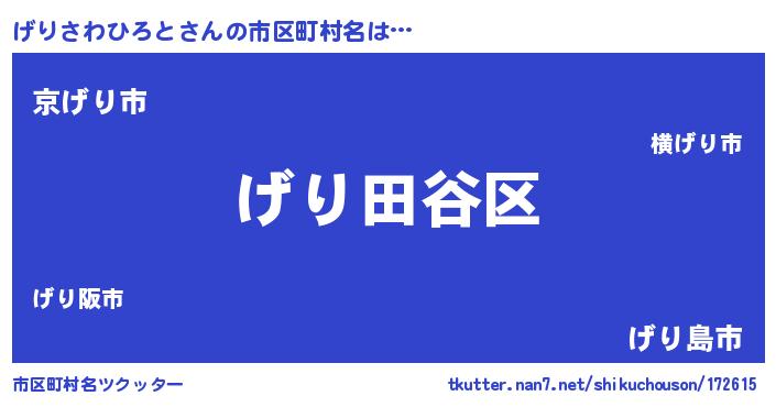 | 男性向けラノベタイトル風あだ名 | 『うちのげりさわひろとが世界を掌握している!』 |