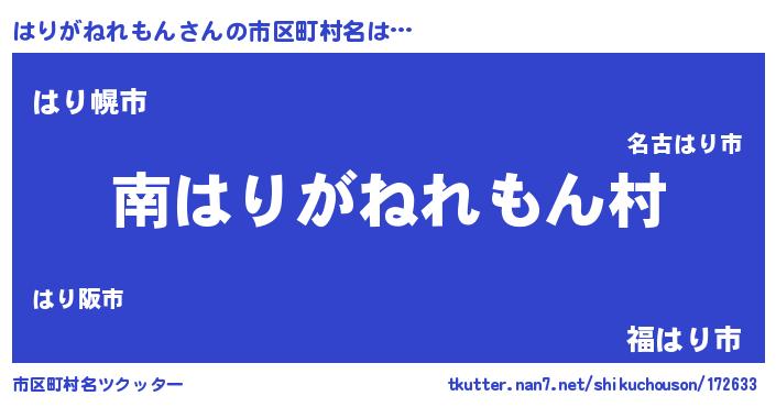 | 2回繰り返すあだ名 | 『はりはり』『ははりり』『りんりん』 |