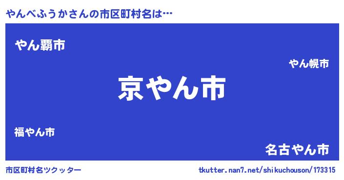 | 男性向けラノベタイトル風あだ名 | 『この素晴らしい世界にやんべふうかを!』 |