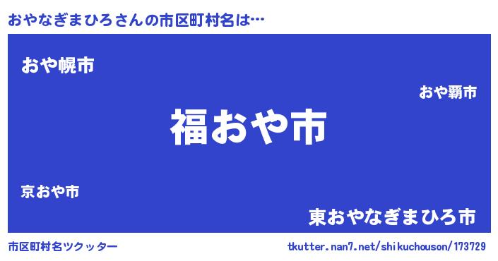 | 男性向けラノベタイトル風あだ名 | 『おやなぎまひろ~年齢イコール彼女いない歴の魔法使い~』 |