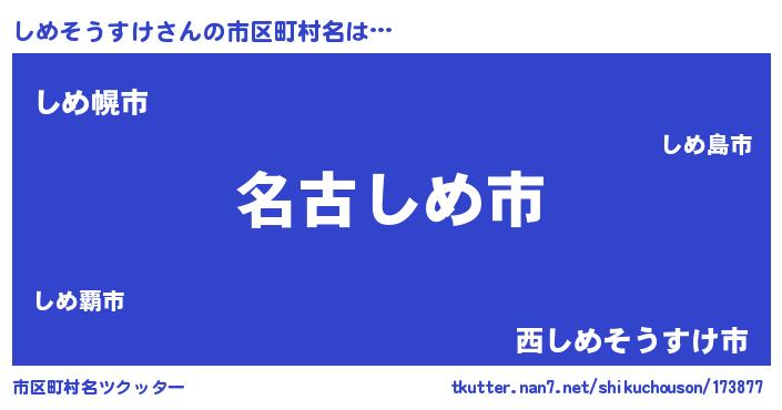 | 男性向けラノベタイトル風あだ名 | 『しめそうすけに滅ぼされるだけの簡単なお仕事です』 |