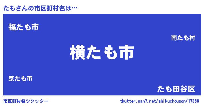 | 男性向けラノベタイトル風あだ名 | 『Re:たもから始める異世界生活』 |