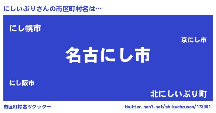 | 男性向けラノベタイトル風あだ名 | 『にしいぶりに滅ぼされるだけの簡単なお仕事です』 |