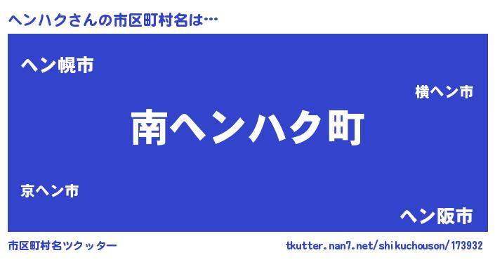 | 意味不明あだ名 | 『ペロリンヘンハク』『自称ヘンハク』 |