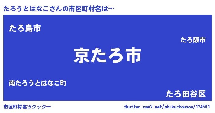 | 意味不明あだ名 | 『住所不定無職たろうとはなこ(5歳)』 |