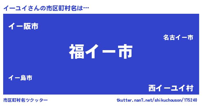 | 男性向けラノベタイトル風あだ名 | 『イーユイ~年齢イコール彼女いない歴の魔法使い~』 |