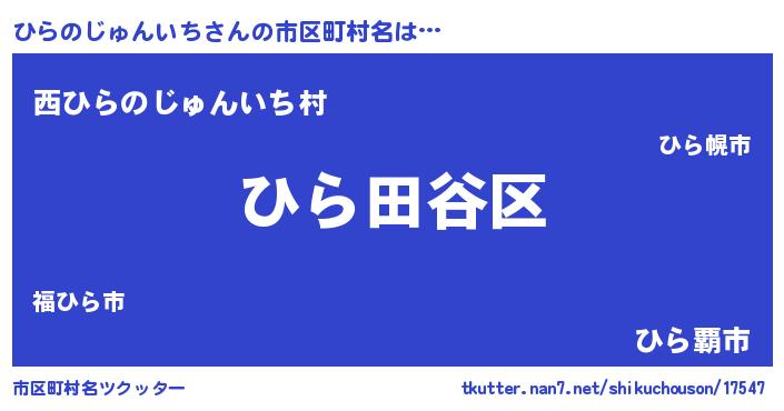 | 男性向けラノベタイトル風あだ名 | 『うちのひらのじゅんいちが世界を掌握している!』 |