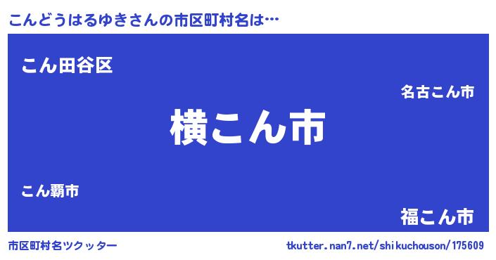 | 男性向けラノベタイトル風あだ名 | 『Re:こんどうはるゆきから始める異世界生活』 |