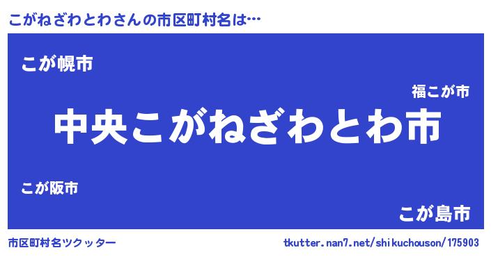 | 男性向けラノベタイトル風あだ名 | 『こがねざわとわの憂鬱』 |