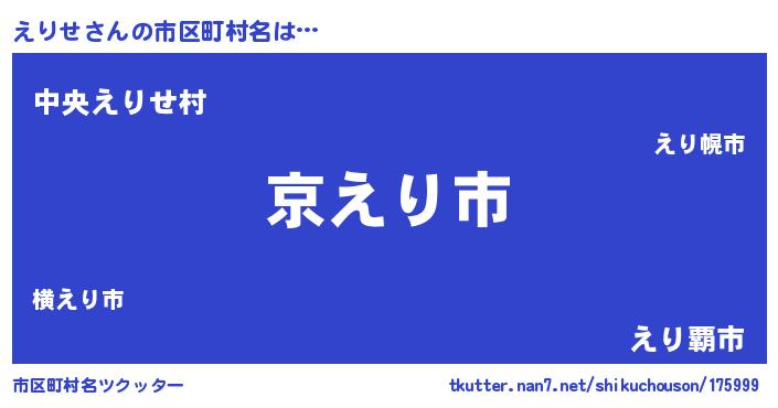 | 男性向けラノベタイトル風あだ名 | 『この素晴らしい世界にえりせを!』 |