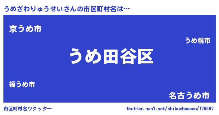 | 意味不明あだ名 | 『住所不定無職うめざわりゅうせい(41歳)』 |