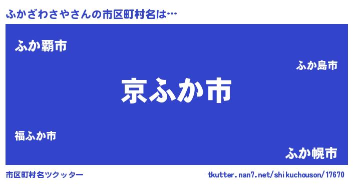 | 男性向けラノベタイトル風あだ名 | 『この素晴らしい世界にふかざわさやを!』 |