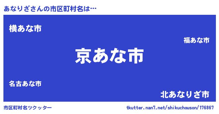 | 意味不明あだ名 | 『住所不定無職あなりざ(93歳)』 |