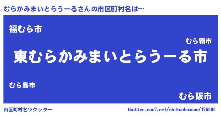 | 男性向けラノベタイトル風あだ名 | 『むらかみまいとらうーるの憂鬱』 |