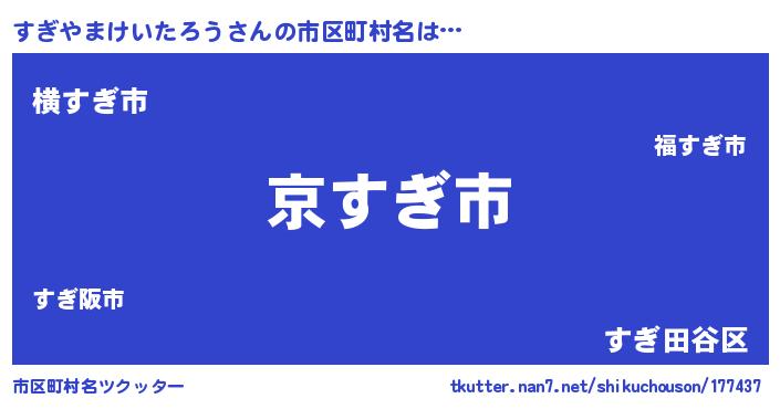 | 意味不明あだ名 | 『住所不定無職すぎやまけいたろう(40歳)』 |