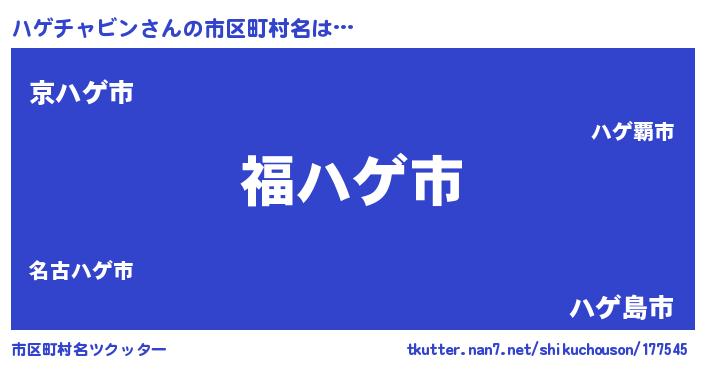 | 男性向けラノベタイトル風あだ名 | 『転生したらハゲチャビンだった件』 |