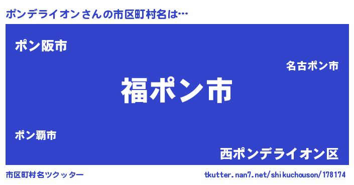| 男性向けラノベタイトル風あだ名 | 『ポンデライオン~年齢イコール彼女いない歴の魔法使い~』 |