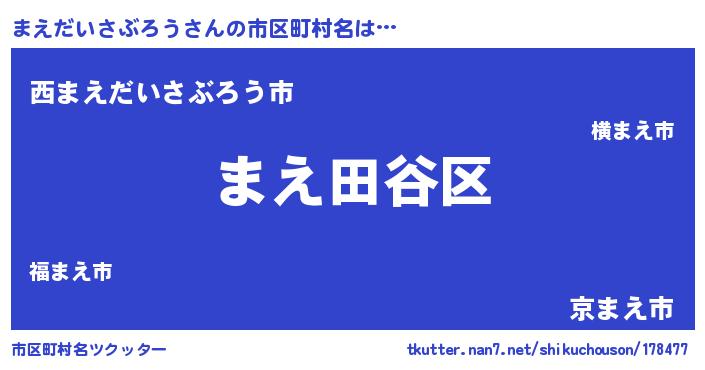| 男性向けラノベタイトル風あだ名 | 『冴えないまえだいさぶろうの育てかた』 |
