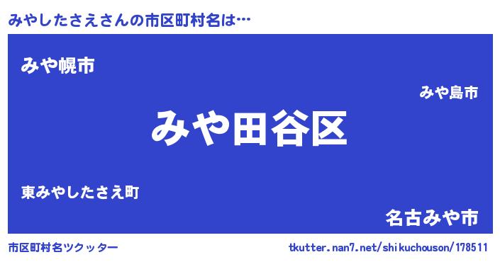 | 男性向けラノベタイトル風あだ名 | 『うちのみやしたさえが世界を掌握している!』 |