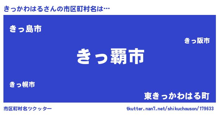 | 男性向けラノベタイトル風あだ名 | 『きっかわはるという概念が存在しない退屈な世界 』 |