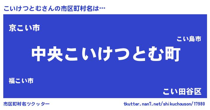 | 男性向けラノベタイトル風あだ名 | 『こいけつとむの憂鬱』 |