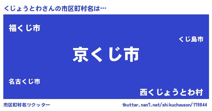 | 恥ずかしいあだ名 | 『プリティーくじょうとわ』『くじちん』 |