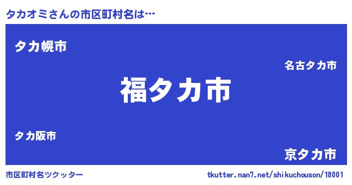 | 男性向けラノベタイトル風あだ名 | 『タカオミ~年齢イコール彼女いない歴の魔法使い~』 |