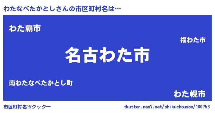 | 男性向けラノベタイトル風あだ名 | 『わたなべたかとしに滅ぼされるだけの簡単なお仕事です』 |