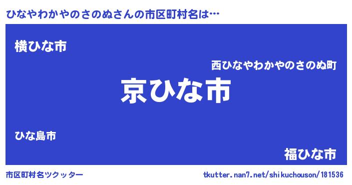 | 意味不明あだ名 | 『住所不定無職ひなやわかやのさのぬ(62歳)』 |