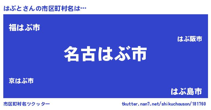 | 男性向けラノベタイトル風あだ名 | 『はぶとに滅ぼされるだけの簡単なお仕事です』 |