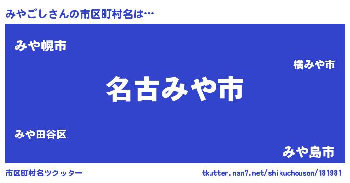 | ヒーロー風カッコイイあだ名 | 『ウルトラみやごしマン』『ネオミヤゴシ』 |
