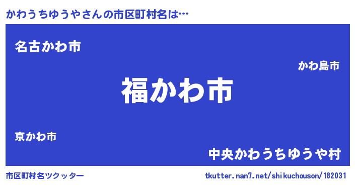 | 男性向けラノベタイトル風あだ名 | 『かわうちゆうや~年齢イコール彼女いない歴の魔法使い~』 |