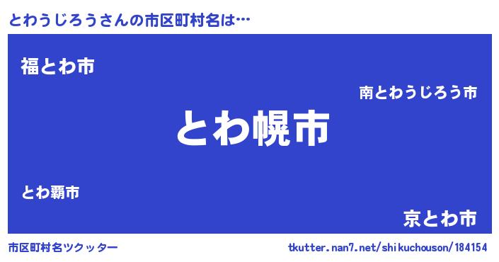 | 肩書あだ名 | 『とわうじろう大統領』 |